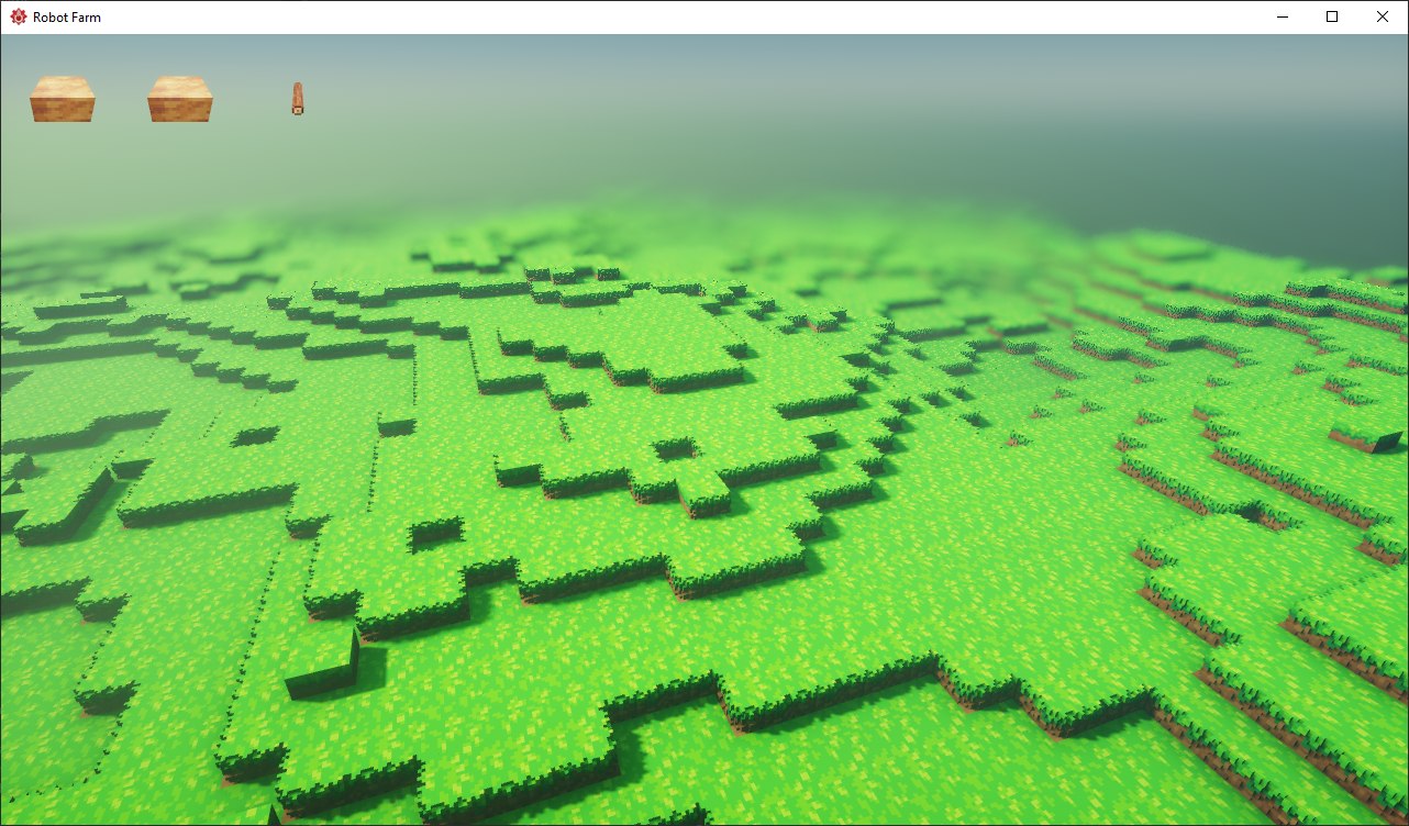 A cool thing to keep in mind about these starter map generators, fog/lighting settings, and brushes (for painting blocks) is that they’ll all be configurable by the user. Meaning you can set up your starter map to generate however you want. Right now I’m editing the code live to tweak it, but the plan is to expose all of these settings through Lua/config files most likely. We’ll be giving both ourselves and you so many options for making your own Robot Farm storylines and worlds!